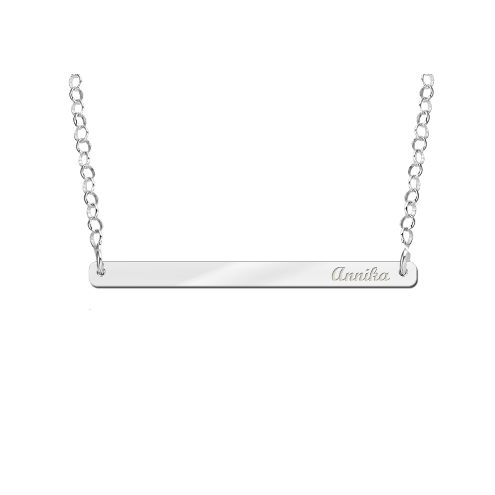 Der Onlineshop Namesforever setzt sich immer mit den neuesten Trends in Szene und das ist zur Zeit die Bar-Namenskette! Was für eine erstaunliche Idee, auf einer silbernen oder goldenen Namenskette mit Bar Ihren Namen oder den Namen einer geliebten Person einzugravieren. Die Namenskette mit Bar ist ein beliebter Modetrend und Sie finden diese trendigen Ketten in den verschiedensten Ausführungen in vielen Modezeitschriften. Unsere Namenskette ist aus erstklassigem 925er Sterlingsilber oder 14-karätigem Gold gefertigt. Wir bieten Ihnen eine große Auswahl an Bar-Namensketten, die wir gern mit einer Namensgravur personalisieren. Sie können uns mit der Gravur Ihren eigenen Namens oder vielleicht mit dem Namen Ihres Partners oder Ihres besten Freundes beauftragen. Wir fertigen jede einzelne