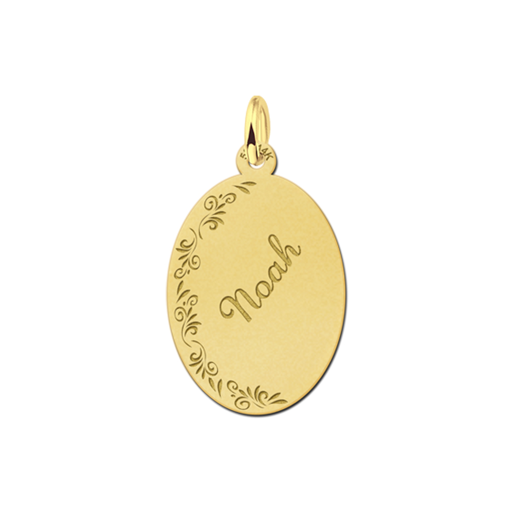 Dieser Goldanhänger ist oval und hat eine wunderschöne Verzierung am Rand. Die Ornament Verzierung am Rand macht diesen Anhänger sehr elegant. Auch können Sie Ihren Namen nach Wunsch eingravieren lassen. Aber auch Abkürzungen oder kleine Gedanken können eingraviert werden. Diese werden mit einem zierlichen Buschstaben eingraviert. Welche Gravur Sie auch graviert haben möchten, wir werden dafür sorgen das dieser sorgfältig eingraviert wird. Der ovale Anhänger aus Gold hat eine Größe von 16x22mm Bestellen Sie gleich eine Kette dazu dann ist Ihr Schmuckstück komplett. Ihr Goldanhänger wird in einem hübschen Schmuckkästchen verpackt. Der Versand erfolgt kostenlos, unabhängig vom Bestellwert.
