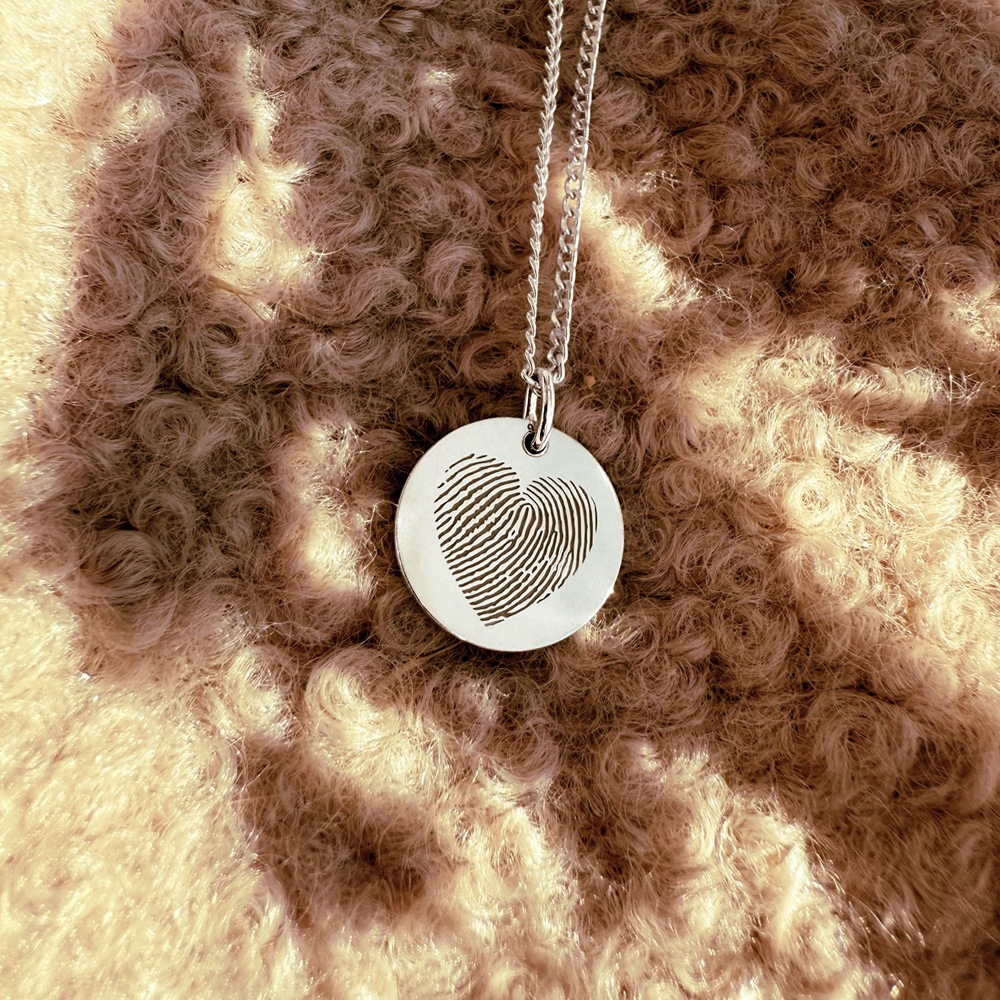 Runder Fingerabdruck Anhänger in Herzform Personalisieren Sie Ihren SchmuckRunder Fingerabdruck Anhänger in HerzformProduktnummer:ZHEV025Preis: € 69,95 € 55,96 1 Bild hochladen* 2 Kette wählen* Ohne Kette 38-42cm (Kind) Silberne Anker Kette 45-50cm Silberne Anker Kette 38-42cm Silberne Gourmet Kette 55-60cm Silberne Gourmet Kette 38-42cm (Kind) - Silberne Kette Jasseron 45-50cm - Silberne Kette Jasseron 55-60cm Silberne Figaro Kette 38-42cm (Kind) - Silberne Kugelkette 45-50cm Silberne Kugelkette 45-50cm Silberne Gourmet Kette 38-42cm (Kind) - Silberne Venezianischen Kette 45-50cm - Silberne Venezianischen Kette Möchten Sie einen Rückseitengravur?* Nein Ja (+ 15,00 €) 3 Name: (Bis zu 12 Zeichen)* Tragen Sie hier eventuelle Bemerkungen ein: In den Warenkorb Kostenloser VersandSchnelle Lieferung Auch lieferbar in: 14 Karat Gold Produktinformation:Runder Fingerabdruck Anhänger in HerzformProduktnummer:ZHEV025Preis: € 69,95 € 55,96 Beschreibung Dieser silberne Fingerabdruck Anhänger hat ein zeitloses und modernes Design. In den Anhänger kann ein Fingerabdruck graviert werden. Die Breite beträgt 16 mm und die Höhe 16 mm. Die Dicke beträgt 0,7 mm. Ebenfalls können Sie eine Halskette zu dem Anhänger wählen. Wir haben Kettenlängen von 38 - 42cm und 45 - 50cm. Hierbei können Sie sich aus verschiedenen Arten von Ketten entscheiden. Möchten Sie das Schmuckstück verschenken? Kein Problem! Das Schmuckstück wird in einer schönen Geschenkdose geliefert. Eigenschaften Material 925 Sterling Silber Diameter Anhänger 16 x 16 mm Stärke 0,7 mm Gravur 1 Fingerabdruck Kundenservice Möchten Sie etwas anpassen? Mailen Sie oder rufen Sie unseren Kundenservice an unter +49 2182 6990877 oder info@namesforever.de. Standardversand dauert 10-12 Werktage, Expressversand (+ 4,95€) 5-6 Werktage. * Bitte beachten: Da dieser Schmuck speziell für Sie angefertigt wird, kann dieser nicht umgetauscht oder zurückgegeben werden. Newsletter - 10% Willkommensrabatt sichern!Erhalten Sie alle neusten Infos & Deals von NamesforeverEmailadresse:Vorname:Geburtsdatum: