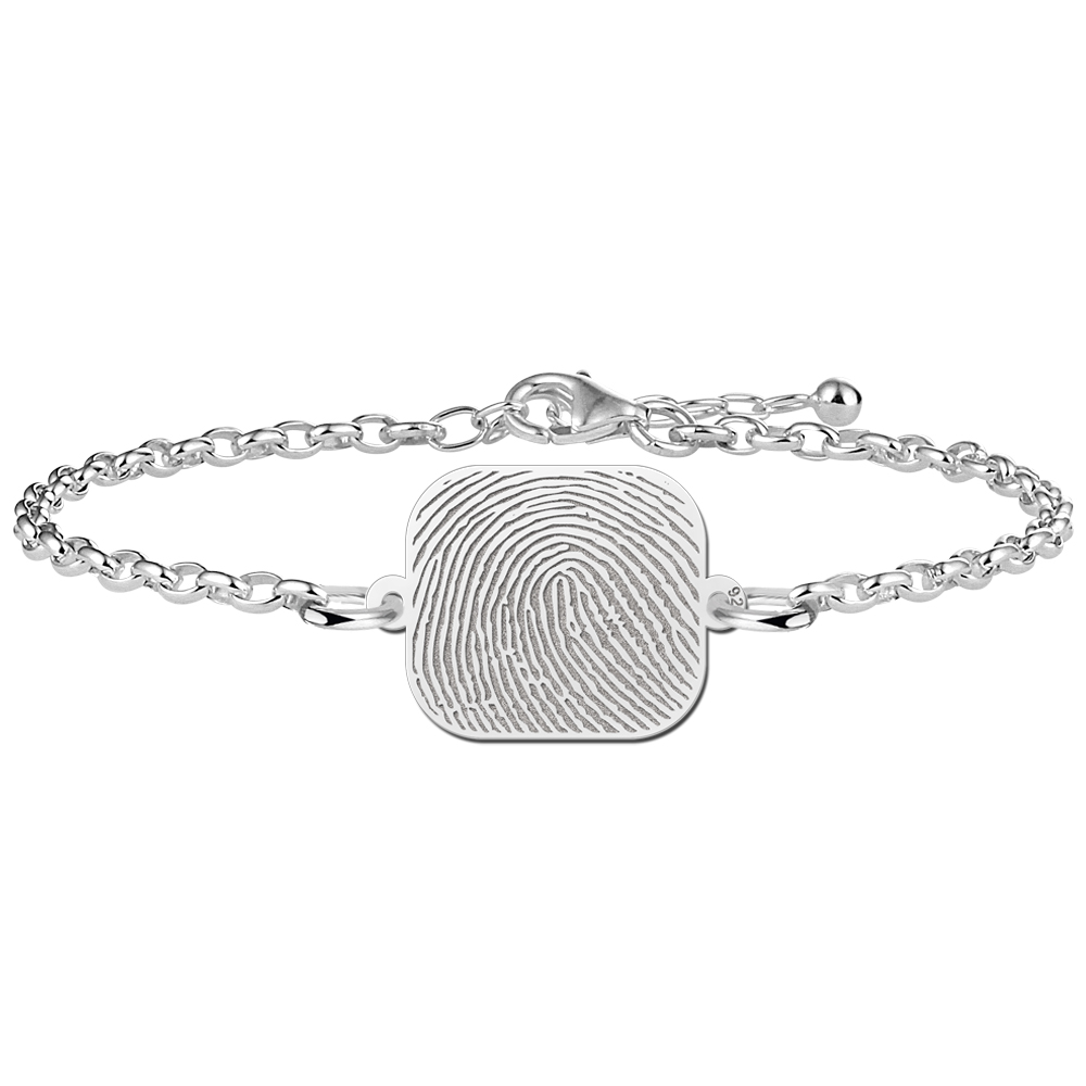 Silbernes Armband Fingerabdruck mit Rechteck Personalisieren Sie Ihren SchmuckSilbernes Armband Fingerabdruck mit RechteckProduktnummer:ZAEV005Preis: € 79,95 1 Bild hochladen* Möchten Sie einen Rückseitengravur?* Nein Ja (+ 15,00 €) 2 Name: (Bis zu 12 Zeichen)* Tragen Sie hier eventuelle Bemerkungen ein: In den Warenkorb Kostenloser VersandSchnelle Lieferung Auch lieferbar in: 14 Karat Gold Produktinformation:Silbernes Armband Fingerabdruck mit RechteckProduktnummer:ZAEV005Preis: € 79,95 Eines unserer persönlichsten Schmuckstücke ist dieses schöne Fingerabdruck Armband mit Rechteck. Da der Fingerabdruck jeder Person individuell ist, können Sie mit diesem Fingerabdruck Schmuck wirklich einen Teil Ihrer/s Liebste/n mit sich tragen. Ein Fingerabdruck Armband ist zum Beispiel ein toller Erinnerungsschmuck, um einer geliebten verstorbenen Person zu gedenken. Zudem eignet sich das Armband zum Beispiel auch perfekt für den Fingerabdruck Ihres Freundes, Ihrer Freundin oder Ihres Kindes, um zu zeigen, wie viel dieser Mensch Ihnen bedeutet. Persönlicher geht es nicht! Das Armband sowie auch der Anhänger werden beide aus 925 Sterlingsilber hergestellt. Das Armband wird in einer schönen Schmuckbox verpackt. Es eignet sich daher auch wunderbar als Geschenk. Wen werden Sie damit überraschen? Eigenschaften Material: Silber Größe des Anhängers: 16,5 mm x 15 mm Stärke des Anhängers: 0,7 mm Stärke des Armbandes: 2 mm Armbandlänge: 17 - 20 cm Newsletter - 10% Willkommensrabatt sichern!Erhalten Sie alle neusten Infos & Deals von NamesforeverEmailadresse:Vorname:Geburtsdatum: